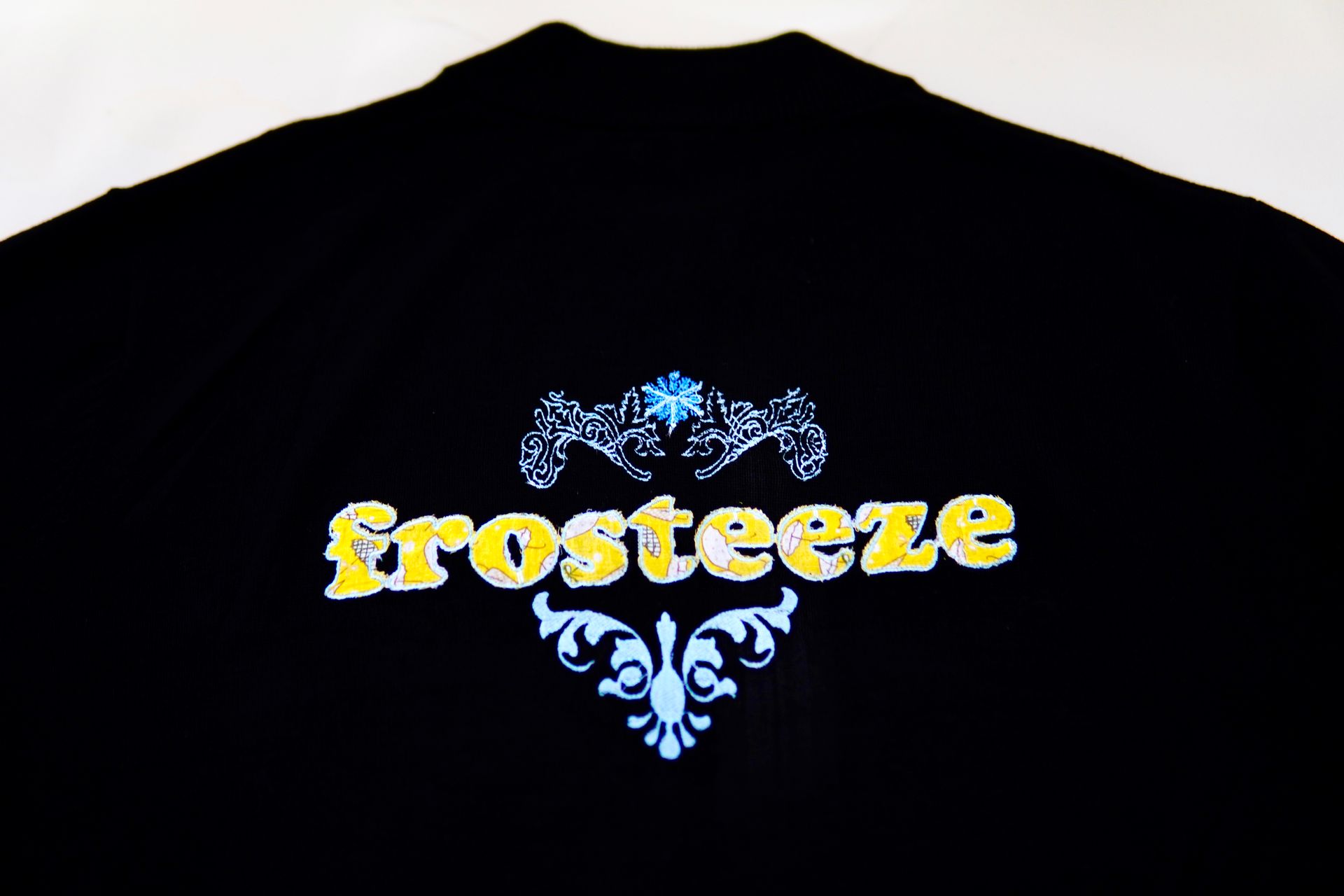 Crafted from premium heavyweight knit fabric, this piece features a full-zip silhouette with ribbed trims for a structured fit. The front showcases a signature Austeez crest embroidery, symbolizing discipline and elegance. On the back, a statement “Frosteeze” appliqué and embroidery merge heritage detail with bold expression capturing the essence of controlled chaos and icy composure.